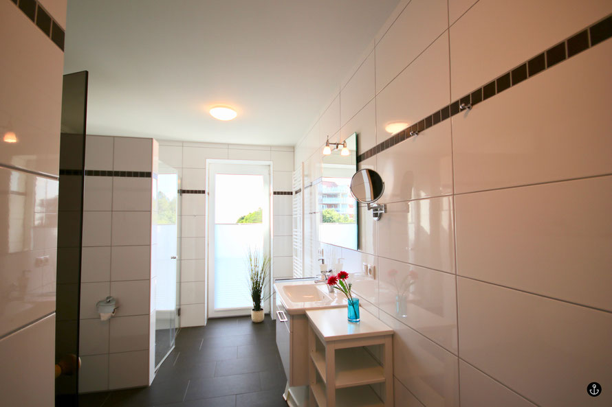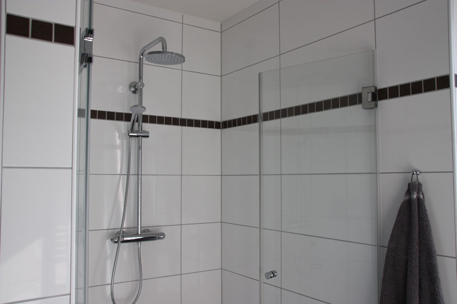 Anschließend genießen Sie die Annehmlichkeiten unserer ebenerdigen Regenwalddusche.